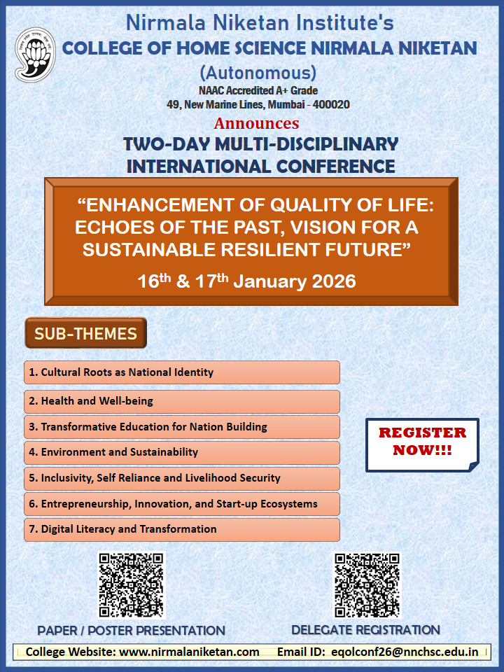 - To contribute to the national and international knowledge base in Home Science and allied fields.