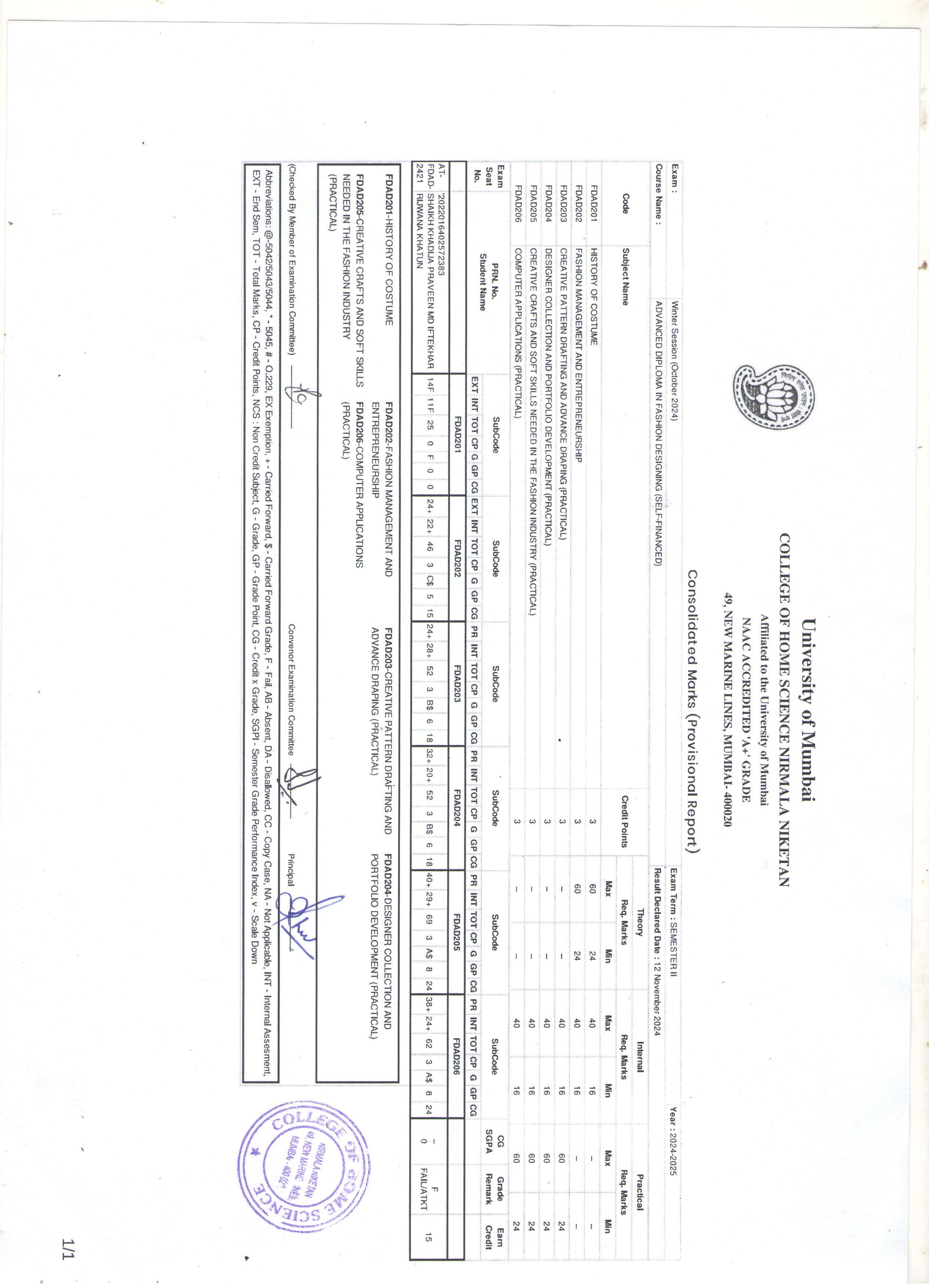 Winter Session (October 2024) Semester II Advanced Diploma in Fashion Designing ATKT Result by Nirmala Niketan Admin | Nov 16, 2024 | Result